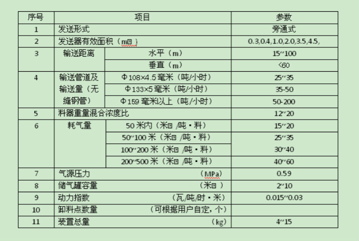 ZSP系列旁通式氣力輸送系統主要技術(shù)參數: