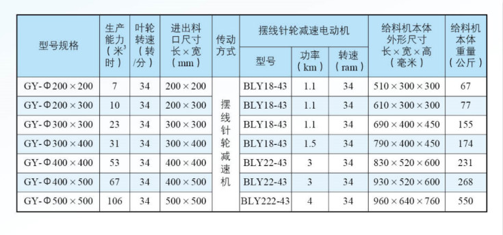 二、全自動(dòng)包裝秤GY型剛性葉輪式給料機主要技術(shù)參數:
